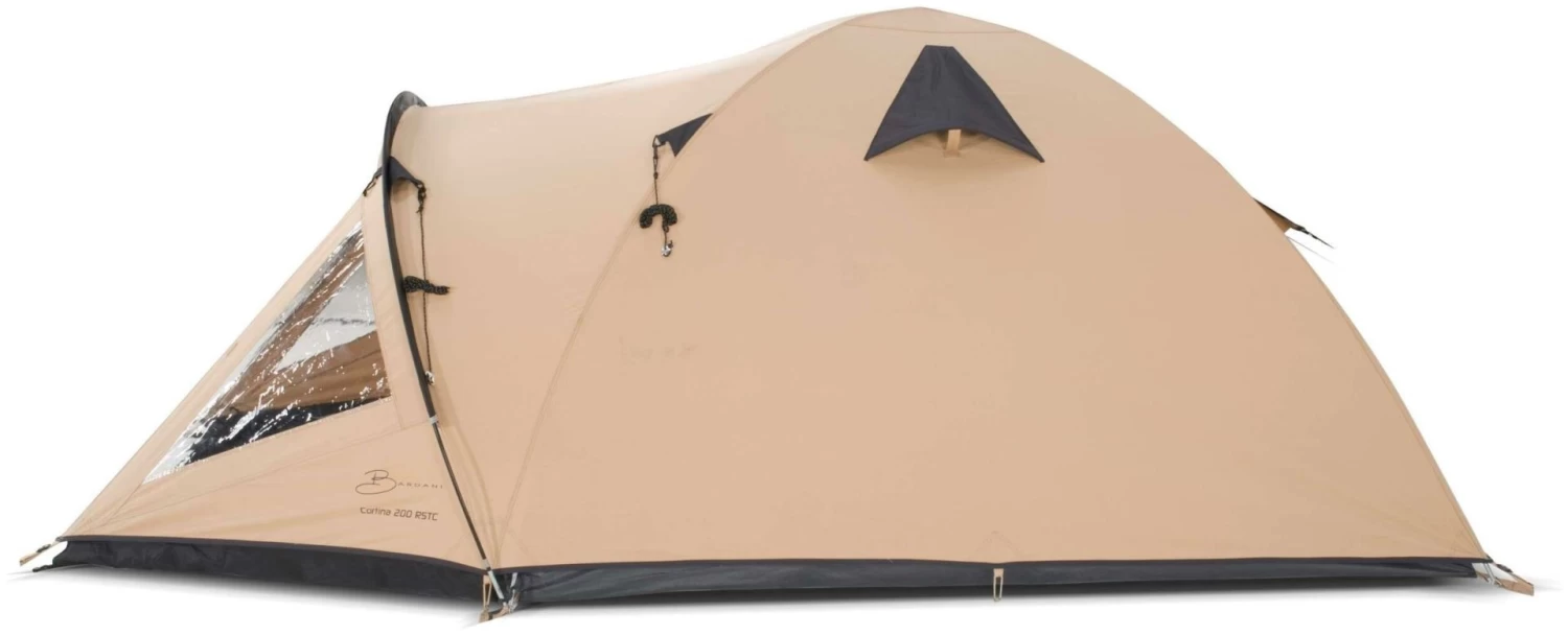 De Bardani Cortina 200 RSTC is een stevige 2-3 persoons bijzettent met leefruimte. De buitentent is gemaakt van ademend technisch ripstop katoen (210 gr/m2). De binnentent is van ademend technisch katoen, met een PE kuipgrondzeil. De slaapcabine is verduisterd, en extra lang (230 cm). De ramen in de buitentent zijn afsluitbaar met gordijnen. De deur naar de slaapcabine is voorzien van volledig horrengaas, voor extra ventilatie.