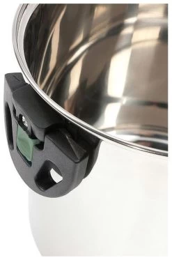 Ein luxuriöses 3-teiliges Edelstahl-Pfannenset. Jede Pfanne hat einen Deckel mit hitzebeständigem Knauf. Zusätzlich hat jede Pfanne einen hitzebeständigen Umleggriffe. Nach Gebrauch können diese Handgriffe einfach umgeklappt werden, so dass die Pfannen platzsparend gestapelt und verstaut werden können. Spart bis zu 40% Platz! Die Töpfe sind schmal und hoch und daher ideal für den begrenzten Raum auf Gas-Ringen geeignet. Kann mit Wärmequellen aus Gas, Strom und Keramik verwendet werden. Maße (ØxH): 12×11, 16×15 und 20×19 cm. Maße gestapelt (ØxH): 20×19 cm. Fassungsvermögen: 1,25; 3 und 6 Liter.
