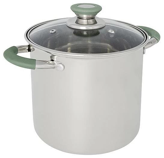 Ein extra stabiler Edelstahl-Kochtopf. Der luxuriöse Topf verfügt über solide und hitzebeständige Griffe und einen hitzebeständigen Deckelknauf. Dieser Topf ist schmal und hoch und daher ideal für den begrenzten Raum auf Gas-Ringen geeignet. Kann mit Wärmequellen aus Gas, Strom und Keramik verwendet werden.