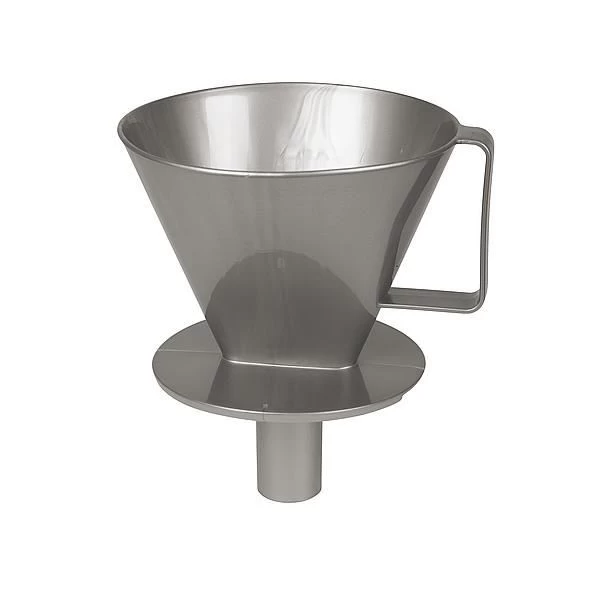Ein stabiler Kaffeefilterhalter. Dieser Kaffeefilter ist für Papierkaffeefilter Nr. 4 geeignet. Kann über einem Becher verwendet werden. Durch die Tülle an der Unterseite ist der Filter auch geeignet für die Verwendung auf einer Thermoskanne oder Kaffeekanne.