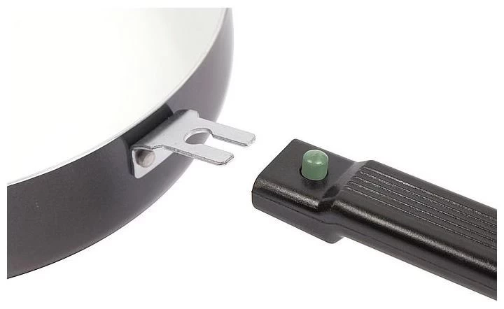 Eine kompakte Gourmetpfanne, auch Sauteuse genannt. Diese Pfanne ist mit einer keramischen Beschichtung versehen, dadurch wird das Anbacken verhindert, und die Pfanne ist kratzfest und leicht zu reinigen. Darüber hinaus ist es ein gesünderes Kochen, da weniger Fett zum Braten erforderlich ist. Kann auf Gas-, Keramik- und Elektro-Wärmequellen verwendet werden. Diese Pfanne ist platzsparend, durch den abnehmbaren Griff. Dicke: 2,2 mm.
