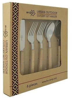 Ein extra robustes Besteck. Dieses 6-teilige Set besteht aus 2 Gabeln, 2 Messer und 2 Löffeln. Der Griff hat ein natürliches Aussehen, weil er aus Holz ist. Zusätzlich wird dieses Besteck aus stabilem und starkem Edelstahl, das bis zum Ende des Griffs befestigt ist. Dadurch hat das Besteck eine extra lange Lebensdauer.