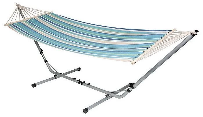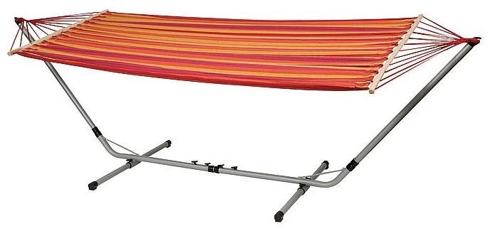 Eine stilvolle und sehr robuste Hängematte. Bringt das echte Urlaubsgefühl hervor! Hergestellt aus robustem 320gr / m² Baumwolle / Polyester. Die Hängematte hat an den Enden eine Spreizstange von 118 cm, so dass der Stoff vollständig offen bleibt.