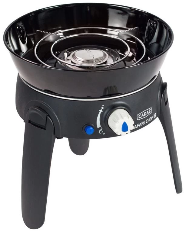 Der Safari Chef ist als Hoch- (HP) und Niederdruckvariante (LP) erhältlich. Diese HP-Version arbeitet direkt mit einer EN417-Gaskartusche. Einfach die Kartusche unter das Gerät schrauben und du kannst sofort mit dem Grillen beginnen! Die LP-Version kann mit jeweils einem entsprechenden Schlauch an einer gewöhnlichen Gasflasche, Gewindekartusche oder CADAC Power Pak angeschlossen werden.