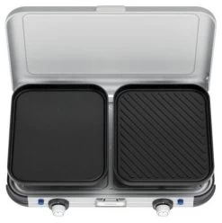 Now, cooking elaborate meals for the whole family is very easy! This dual-burner party grill features an interchangeable, enamelled steel grid and a plancha. Its stainless steel hobs give you the flexibility to prepare elaborate meals for the whole family even on a compact stove!