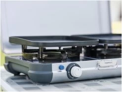 This Campingaz stove uses Campingaz’s R904 and R907 butane/propane cylinders. The powerful hobs have an output of 2x 2000 watts and are easy to light thanks to Piezo ignition.