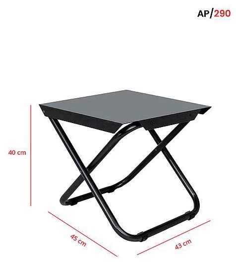 Ein leichter und sehr stilvoller quadratischer Beistelltisch. Dieser Beistelltisch ist wasserdicht, kratzfest und hitzebeständig. Da der Tisch klappbar ist, kann er sehr kompakt getragen werden. Der Beistelltisch ist perfekt in Kombination mit den Liegen AP-262/263.