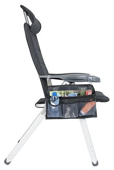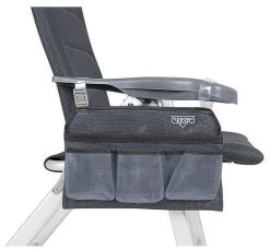 Ein handlicher Organizer für die Armlehne am Klappstuhl. Dieser universelle Organizer passt auf fast jeden Campingstuhl und bietet vier praktische Aufbewahrungstaschen.
