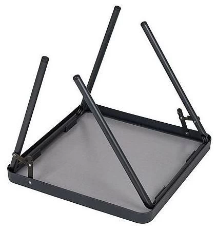 Ein leichter und sehr stabiler quadratischer Tisch. Dieser Campingtisch verfügt über eine hitzebeständige und wasserdichte Tischplatte und einen Aluminiumrahmen mit stilvollen grauen Beinen. Der Tisch eignet sich sehr gut als Beistelltisch. Der Campingtisch ist einfach und kompakt zu transportieren.