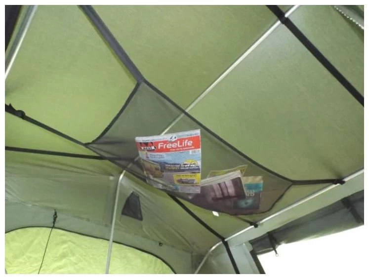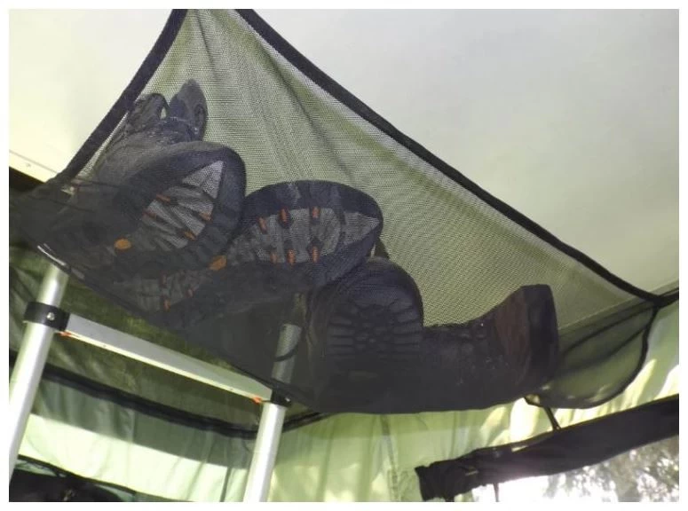 Das Gepäck-/ Schuhnetz kann im Innere oder Äußere des Dachzeltes verwendet werden.