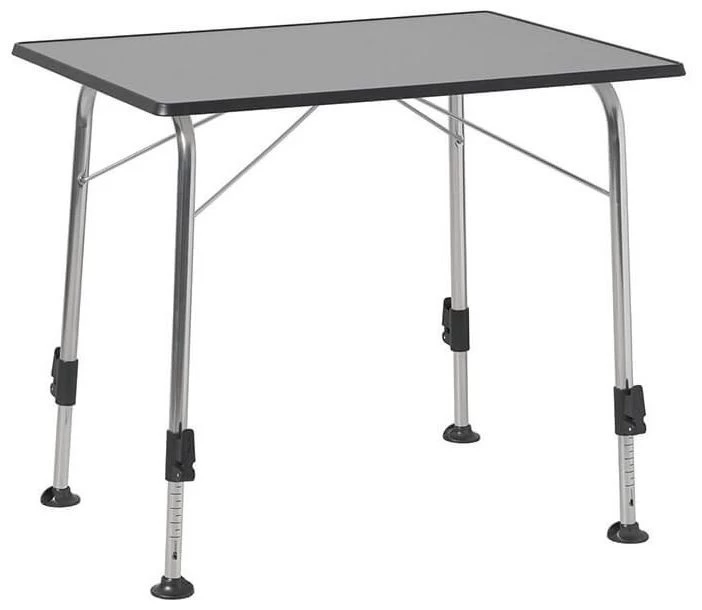 Stabile Tische mit schwerem Design Sevelit Tischplatte in grauem Stahldekor. Die Tische sind serienmäßig mit vier stufenlos verstellbaren Verstellbeinen ausgestattet. Kratz- und hitzebeständig bis 180°C. Wasserfest und UV-beständig. Stabile Tische sind besonders stabil und belastbar bis 50 kg