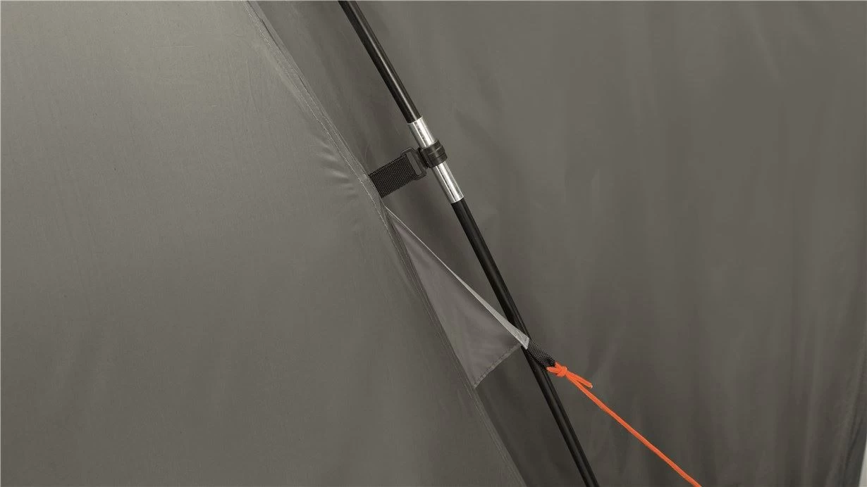 Pre-angled fibreglass poles maximise the space and headroom of the Fairfields awning. Fitting snugly to most vehicles with a height of 180cm-205cm, it can be quickly and easily attached or detached to be left freestanding. Above the large front door, weatherproof ventilation opposite the vehicle access door offers airflow.