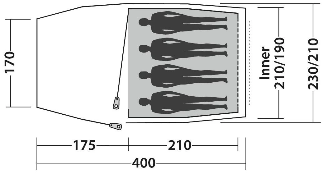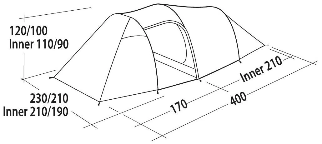 | Außenzelt | 180t Polyester mit PU Coating. Flammschutzmittel, 100% Polyester; 2000 mm |