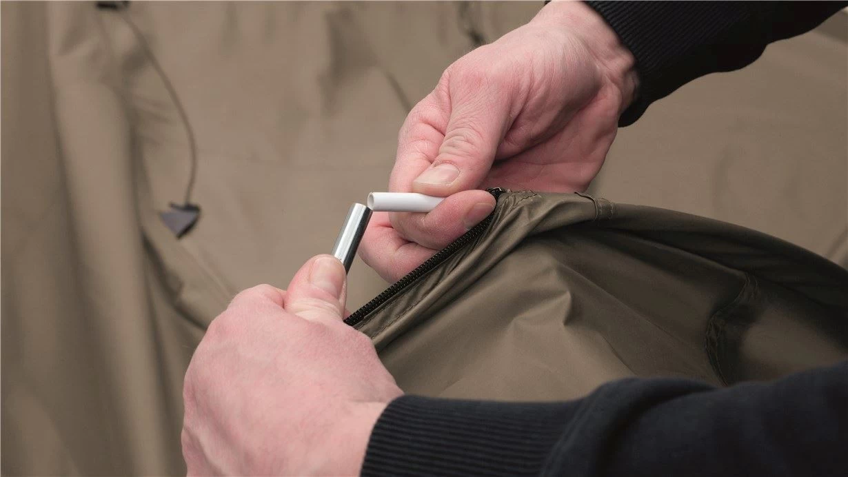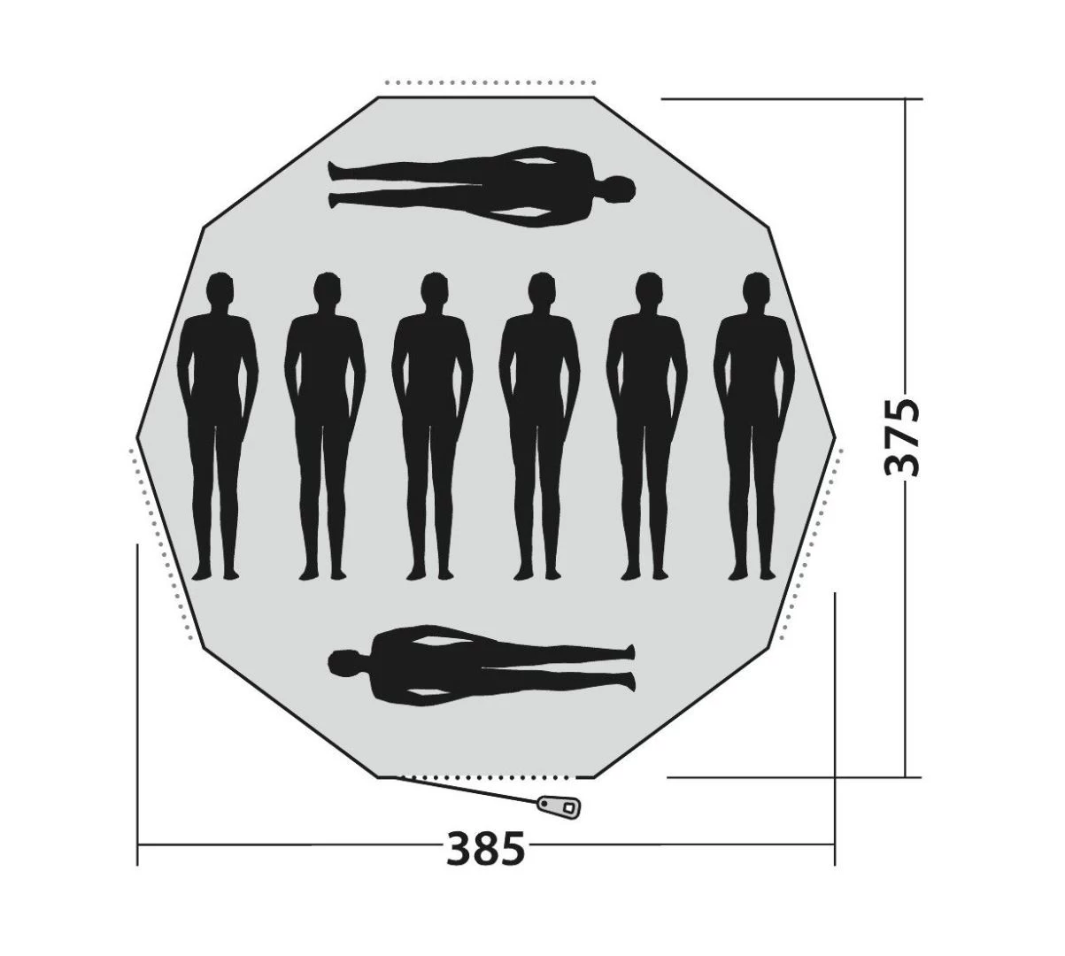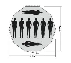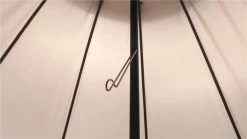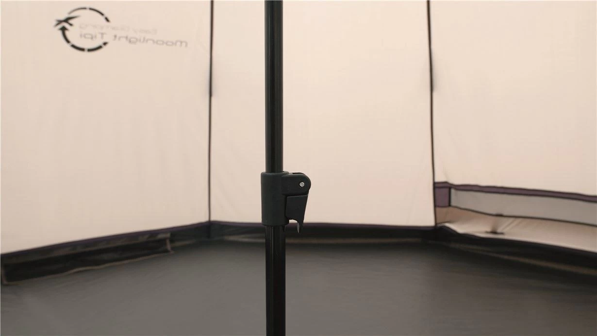 Der Easy Glamping Moonlight Tipi bietet Platz für bis zu acht Glampers in einem klassischen, schnellen Design mit einer zentralen Stahlstange und bietet Familien und Freunden die Größe und Freiheit, intime Räume zu schaffen, sie mit der Natur zu verbinden und Spaß im Freien zu haben. Der einfache Zugang ist durch den faltbaren flachen Eingang mit doppelten Schiebereißverschlüssen an der Tür für flexibles Öffnen und einer vollmaschigen Tür dahinter gewährleistet. Mesh-Belüftungsschlitze unter der Apex-Kapuze mit einem Kunststoffring, der die Form beibehält, und niedrige, abgedeckte Belüftungsschlitze sorgen für ausreichende Belüftung und einen leicht einstellbaren Frischluftstrom.
