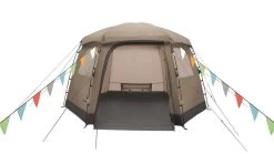 Large mesh panels under the flysheet cap, a mesh window in the door, with a toggle-up curtain, and covered rear vent ensure ample ventilation and easily adjustable fresh airflow.