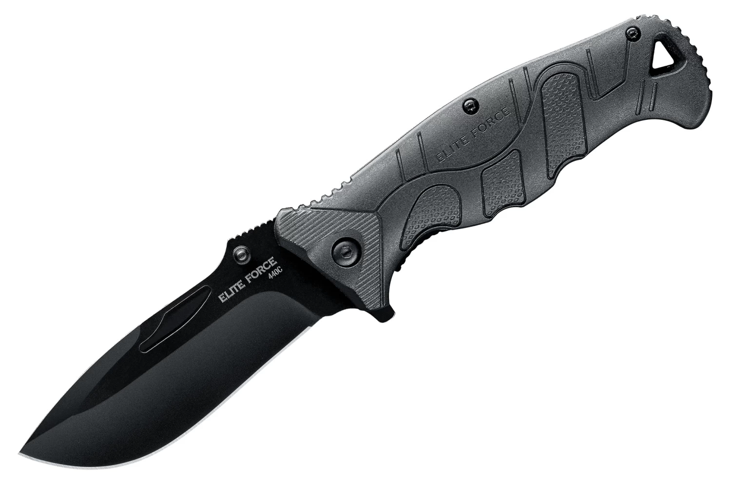 Die Spearpoint-Klinge des Elite Force EF141 besteht aus 440A-Stahl, öffnet per Flipper und wird durch eine Linerlock-Verriegelung arretiert. Ein Gürtelclip hält das Messer immer in Griffnähe.