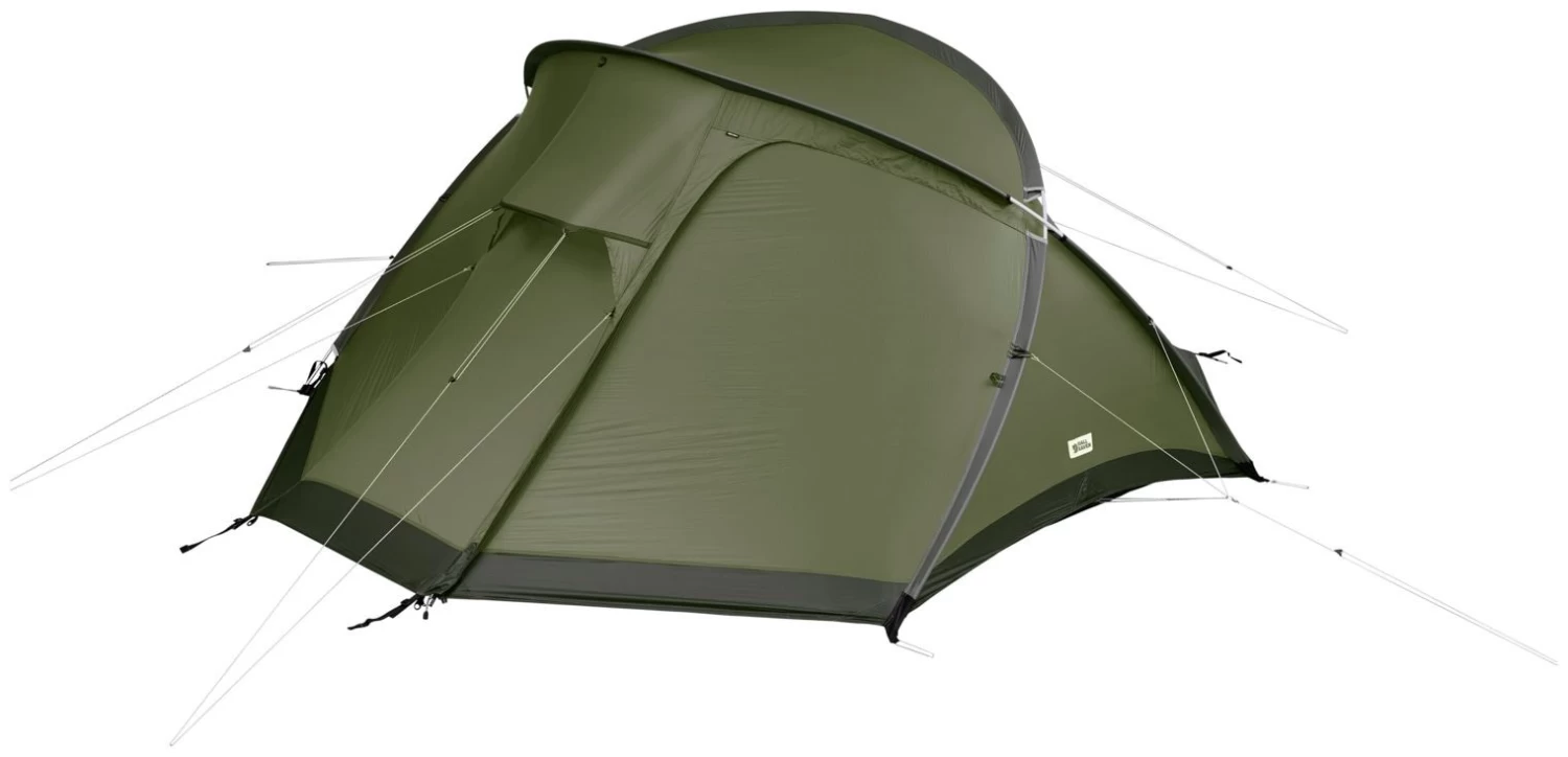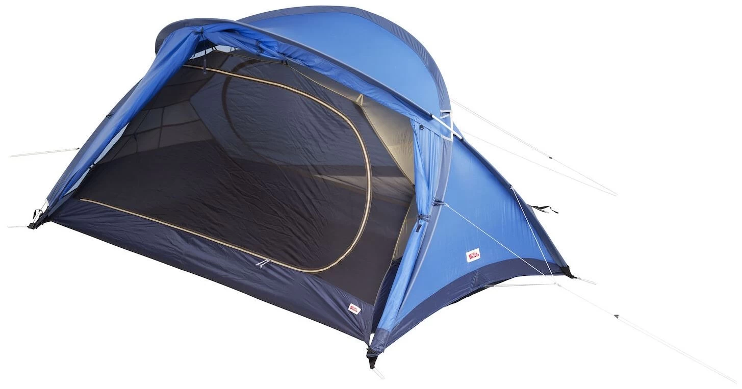 Perfect is voor tropische avonturen. In wisselvallig, maar wel warm weer, kunnen de deuren in halfopen stand vastgezet worden, zodat de binnentent beschermd wordt tegen de regen. De binnen- en buitentent zijn met elkaar verbonden en worden ondersteund door twee tentstokken die elkaar twee keer kruisen. Hierdoor wordt de binnentent zelfdragend, terwijl de leefruimtes opgezet worden met behulp van scheerlijnen en haringen. Zes scheerlijnen van Dyneema verankeren de tent aan de grond en zorgen voor een goede stabiliteit. Twee openingen en twee leefruimtes maken het gemakkelijk om de inrichting van de tent goed te organiseren. Bovendien biedt dit de mogelijkheid om bij veel wind de ingang aan de lijzijde te gebruiken. De royale hoogte maakt een comfortabel verblijf in de tent mogelijk. Binnen in de binnentent zitten een drooglijn en zes opbergvakken voor flessen, zaklampen, kleding enz. Bevestigingspunten voor Gear Loft (een accessoire) in de binnentent. De buitentent is gemaakt van het nieuwe high-performance TripleRip nylon van Fjällräven. Een innovatieve constructie combineert twee verschillende stofdiktes; 20 denier voor de bovenkant en 40 denier voor de onderkant waar de meeste slijtage plaatsvindt. Dit maakt de tent uitzonderlijk sterk ondanks zijn lage gewicht. Net als alle tenten van Fjällräven is de Abisko View 2 geheel zonder PVC en giftige vlamvertragers gemaakt. De impregnering is vrij van fluorkoolstoffen.
