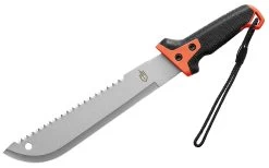 Die robuste COMPACT CLEARPATH Machte aus dem Hause Gerber bietet als zusätzliches Extra eine kräftige Sägezahnung am Rücken und kann somit auch zu Arbeiten eingesetzt werden, bei denen bloßes Hauen nicht mehr ausreicht. Die Klinge aus rostfreiem Edelstahl endet in einem Griff aus rutschhemmendem Kunststoffmaterial, das von Gerber bereits seit vielen Jahren erfolgreich bei der Gator-Serie zum Einsatz kommt. Inklusive Nylonscheide.