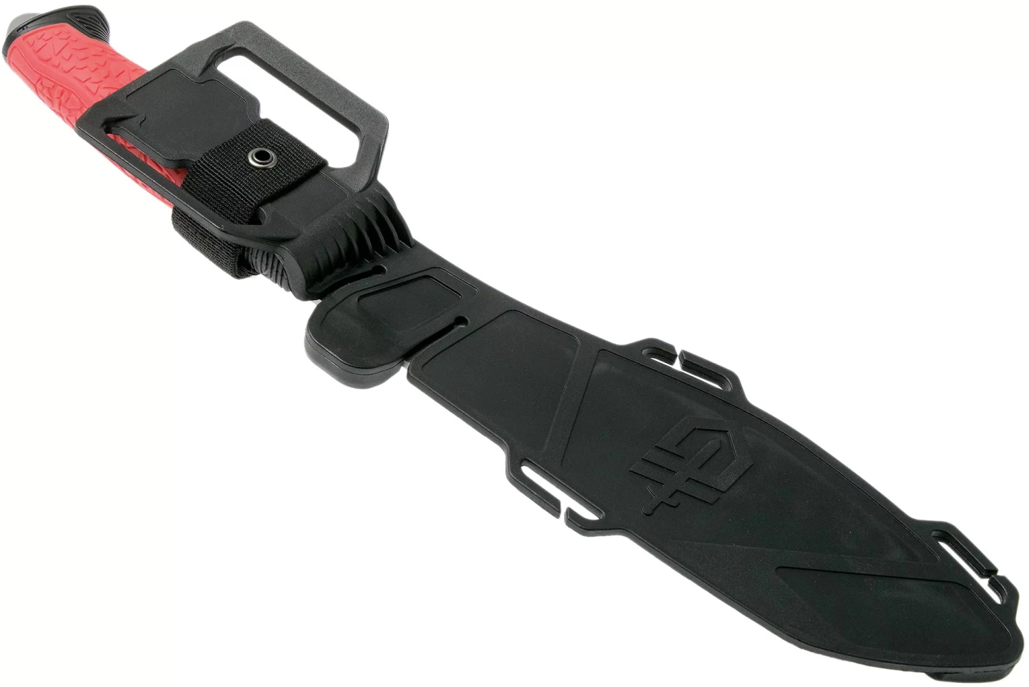 Das Versafix Pro Red ist ist Machete und Messser mit starker, feststehender Klinge in einem. Die geschwungene Klinge eignet sich hervorragend zum hacken und durchtrennen von Gestrüpp und Ästen. Die vorwärts gerichtete Auskehlung am oberen Ende der Klinge gibt mehr Grip bei der beidhändigen Nutzung. Das skelettierte Klingendesign nimmt der Klinge überflüssiges Gewicht und verringert Kraftaufwand bei der Nutzung dieses Gerber Messers.