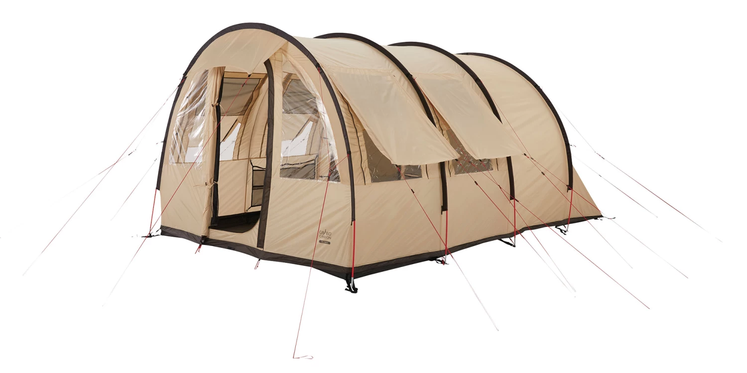 Das Tunnelzelt von Grand Canyon bietet ein tolles Raumgefühl. Die große Apsis mit durchgängiger Stehhöhe des Helena 3 hat genug Platz für ihre Ausrüstung, ein gemütliches und Wind geschütztes beisammen sein oder bei schlechtem Wetter sichern Schutz vor den Elementen. Die zwei separaten Schlafbereiche des Grand Canyon Helena 3 Tunnelzelt sind aufgeteilt in – ein Bereich für zwei Personen und der andere für eine Person (oder Gear). Große abgedeckte Belüftungsöffnungen und Fenster mit Moskitonetzen auf der Außenplane sorgen für eine angenehme Luftzirkulation und ein gutes Raumklima im Zelt. Dank des Kabelzugangs können sie bei längeren Aufenthalten auf dem Campingplatz ihre Kühlbox betreiben, oder die Akkus ihrer Elektrogeräte aufladen. Zwischen den Schlafbereichen und an den Seiten des Helena 3 Tunnelzeltes von Grand Canyon sind Mesh – Taschen für zusätzlichen Stauraum angebracht, um weiteres Equipment unterzubringen.