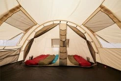 Das Tunnelzelt von Grand Canyon bietet ein tolles Raumgefühl. Die große Apsis des Helena 5 mit durchgängig 2 Meter Stehhöhe bietet genug Platz für ihre Ausrüstung, ein gemütliches und Wind geschütztes beisammen sein oder bei schlechtem Wetter sichern Schutz vor den Elementen. Die zwei separaten Schlafbereiche des Grand Canyon Helena 5 Tunnelzelt sind aufgeteilt in – ein Bereich für 3 Personen und der andere für 2 Personen. Große abgedeckte Belüftungsöffnungen und Fenster mit Moskitonetzen auf der Außenplane sorgen für eine angenehme Luftzirkulation und ein gutes Raumklima im Zelt. Dank des Kabelzugangs können sie bei längeren Aufenthalten auf dem Campingplatz ihre Kühlbox betreiben, oder die Akkus ihrer Elektrogeräte aufladen. Zwischen den Schlafbereichen und an den Seiten des Helena 5 Tunnelzeltes sind Mesh – Taschen für zusätzlichen Stauraum angebracht, um weiteres Equipment unterzubringen.