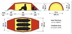 De tunnelconstructie biedt een maximale ruimte-gewichtsverhouding en er zijn slechts vier haringen nodig om op te zetten, en het eenvoudige, enkelvoudige openende, doorlopende koker- en paalspannersysteem is snel op te zetten en opmerkelijk stabiel. De gehele achterwand kan worden opgerold om de grote gaasopening van de binnentent bloot te leggen voor extra doorstroming op warme dagen en het kettingpatroon op de buitententwanden (waar de buitenkant niet helemaal naar de grond gaat) zorgt voor constante ventilatie terwijl biedt nog steeds uitstekende bescherming tegen de regen. Scheerlijnen met lussen die zijn bevestigd aan dubbele bevestigingen aan elke kant van elke paal, verhogen ook de stabiliteit in slechte omstandigheden.