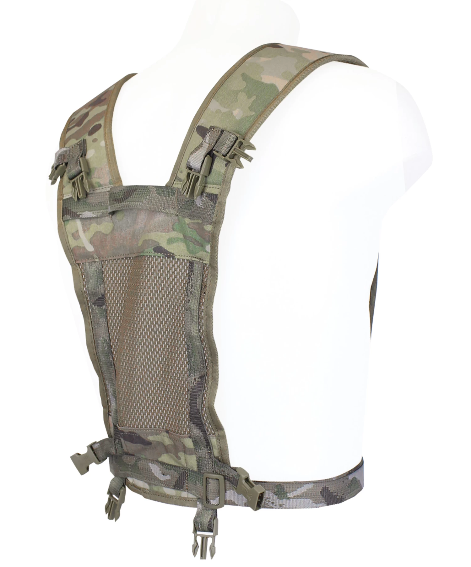 Das Karrimor Yoke System MultiCam mit atmungsaktivem Netzgewebe im Rückenbereich und leicht gepolsterten Schultergurten, dient zur Aufnahme der PLCE-Seitentaschen. Die Taschen werden schnell und bequem über Fastex-Verschlüsse am Gurt angebracht und der regulierbare Bauchgurt sorgt für zusätzliche Stabilität und macht aus dem gesamten System einen hervorragendes Daypack. Der PLCE Yoke ist mit allen Karrimor Seitentaschen und mit der aktuellen PLCE Militärausrüstung der britischen Armee kompatibel.