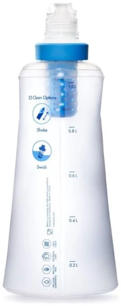 De sterke en flexibele Hydrapak-drinkfles is klein op te bergen als hij leeg is, maar geeft toch ruim een halve liter gefilterd drinkwater door simpelweg te knijpen in de fles. Het filter wordt op de fles gedraaid en heeft een handige drinktuit, de Stay Clean Drink Nozzle. Afhankelijk van de kwaliteit van het water, kan het filter tot wel 1.000 liter water reinigen. De BeFree filtert geen virussen of nare smaakjes, daarvoor wordt aangeraden desinfecterende druppels te gebruiken in combinatie met het filter.
