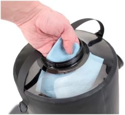 Sie können den voluminösen 5,8-Gallonen-Tank schnell und einfach mit einer Fußpumpe unter Druck setzen – und mit gelegentlichen Pumpen 7-10 Minuten lang mit starkem, kontinuierlichem Spray voll unter Druck halten. Der Tank kann nicht überfüllt werden. Stellen Sie den schwarzen Tank in die Sonne, um sich allmählich aufzuwärmen, oder füllen Sie ihn direkt mit heißem Wasser für eine warme Dusche.