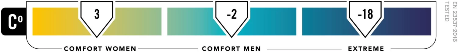 | Temperaturbewertung | Komfort Temp.. Frau 3℃, Komfort Temp.. man -2℃, extrem Temp.. -18℃ |
