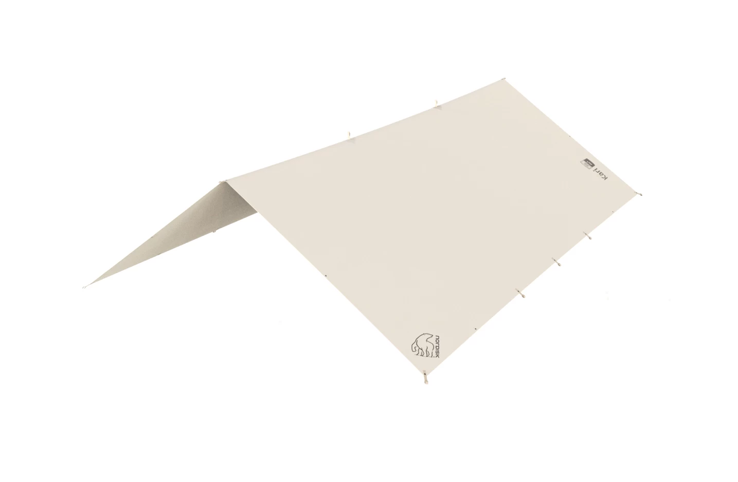 Das Nordisk Kari 12 Basic Cotton Tarp ist eine einfach zu handhabende 12 m² große Baumwollplane, die sowohl mit als auch ohne Zelt verwendet werden kann. Eine Plane bietet zusätzlichen Platz und Schutz und kann auf vielfältige Art und Weise verwendet werden, um das Lager vor Wind und Wetter zu schützen. Das Tarp wird mit zwei starken Stahlstangen, Stahl-V-Heringen mit einem Loch für zusätzliche Stabilität bei sandigem Untergrund und einer Abspannleine geliefert. Das Kari bietet dir eine Vielzahl an Aufstellmöglichkeiten.