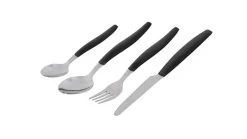 Eine praktische und elegante Bestecklösung für Ausflüge in die Natur. Die Besteckset-Box umfasst Besteck für vier Personen und eine Box zum Aufbewahren. Das Besteck ist aus Edelstahl und schwarzem Kunststoff gefertigt, liegt gut in der Hand und überzeugt mit seinem eleganten und klassischen Design. Das Set besteht aus 4 Messern, 4 Löffeln, 4 Gabeln und 4 Teelöffeln. Das Besteck ist spülmaschinenfest.