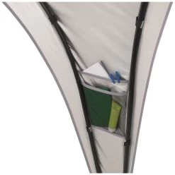 Die Outwell Event Lounge L bietet einen vielseitig nutzbaren, frei stehenden Unterschlupf. Die äußerst robuste und stabile Konstruktion zeichnet sich durch große Zugänge und eine bequeme Stehhöhe aus. Dank der Belüftungsöffnung an der Spitze, dem Aufhängepunkt für eine Laterne in der Mitte sowie zwei Netztaschen bietet die Lounge ein Höchstmaß an praktischer Flexibilität. Das Polyester ist mit einer Silber- und PU-Beschichtung versehen, sodass es einer Wassersäule von 1500 mm standhält. Um einen größeren geschützten Aufenthaltsbereich zu schaffen, können miteinander kompatible Schutzdächer über eine Regenrinne verbunden werden.