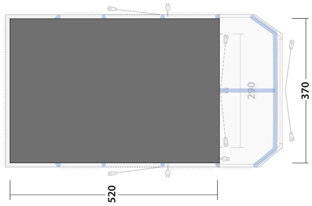Dieser praktische Fußabdruck hält den Zeltfußboden sauber und schützt ihn vor Abrieb und Beschädigung. Es bietet auch eine Isolierung gegen den kalten Boden. Der Fußabdruck sollte vollständig vom Zelt bedeckt sein, um zu verhindern, dass Regen unter den Boden geleitet wird.