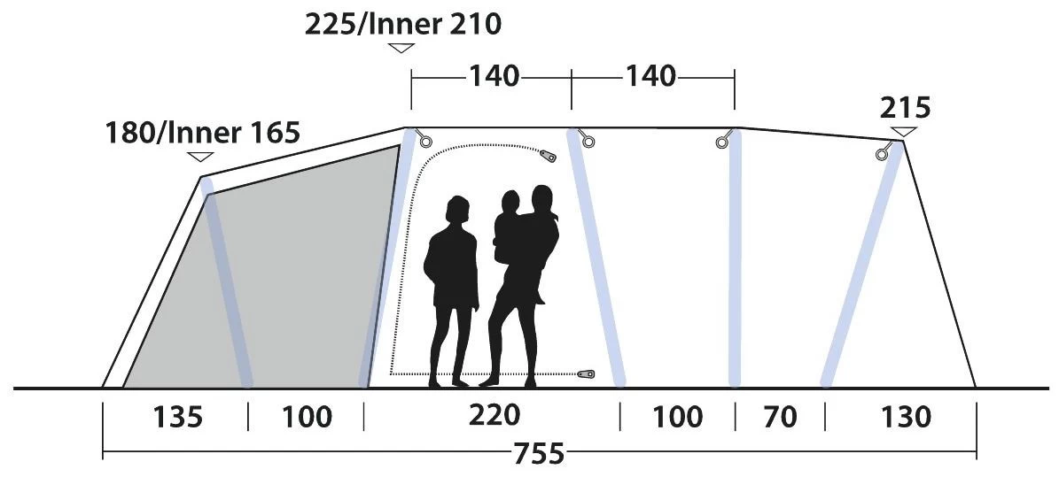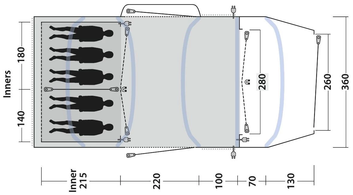 Whether for short breaks or longer camping holidays, youll find the smooth profile ensures excellent stability in high winds. Plus, its three-zone design allows you to leave damp clothing and gear in the wet zone or use it for handy storage. Sleeping up to five in two bedrooms, its a neat, comfortable base for you and yours to enjoy campsite life and outdoor adventures with style and convenience.