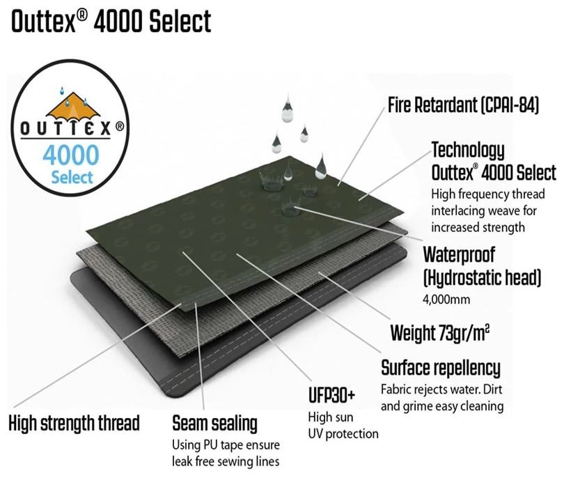 | Außenzelt | Outtex® 4000 auswählen, 100% Polyester; 4000 mm |