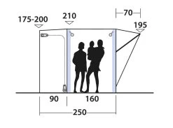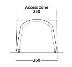 Das aufblasbare Vorzelt Newburg 160 Air bietet trotz der kompakten Größe einen großzügigen und lichtdurchfluteten Innenraum. Der Schleusenbereich mit seinen beiden Seiteneingängen kann mit der mitgelieferten Bodenplane zusätzlich als Wohnraum genutzt werden und vergrößert so den nutzbaren Aufenthaltsbereich. Die komplett zu öffnende Front ist mit einem Moskitonetz ausgestattet und wird durch ein Vordach geschützt. Das Vorzelt lässt sich mithilfe eines Doppel-Keders (5 und 7 mm) oder mit Leinen an Campervans mit einer Höhe zwischen 175 und 200 cm anbauen.
