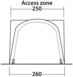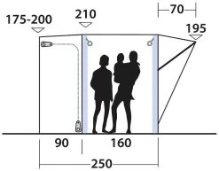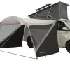 Das aufblasbare Vorzelt Newburg 160 Air bietet trotz der kompakten Größe einen großzügigen und lichtdurchfluteten Innenraum. Der Schleusenbereich mit seinen beiden Seiteneingängen kann mit der mitgelieferten Bodenplane zusätzlich als Wohnraum genutzt werden und vergrößert so den nutzbaren Aufenthaltsbereich. Die komplett zu öffnende Front ist mit einem Moskitonetz ausgestattet und wird durch ein Vordach geschützt. Das Vorzelt lässt sich mithilfe eines Doppel-Keders (5 und 7 mm) oder mit Leinen an Campervans mit einer Höhe zwischen 175 und 200 cm anbauen.