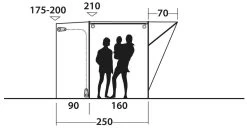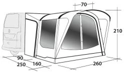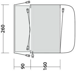 Het tunneltentontwerp van de Newburg 160 Drive Away-vooraanbouw heeft een centrale binnenstok langs de daklijn een ingang in een zijkant van de toegangszone, met gaas en gespen voor hoogteverstelling. De voortent is gemakkelijk en snel te bevestigen aan de rails van de camper in een hoogtebereik van 175 cm – 200 cm door middel van snoeren (5 mm en 7 mm).
