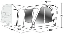 The inflatable Outwell Newburg 240 Tall drive-away awning is easily and quickly attached to either side of your campervan. Its ideal for friends, couples seeking extra space and families with growing children wanting privacy. The tunnel tent has a side door, backed by insect-proof mesh screen, plus theres a door on each side of the Link Access Zone connecting it to your van.