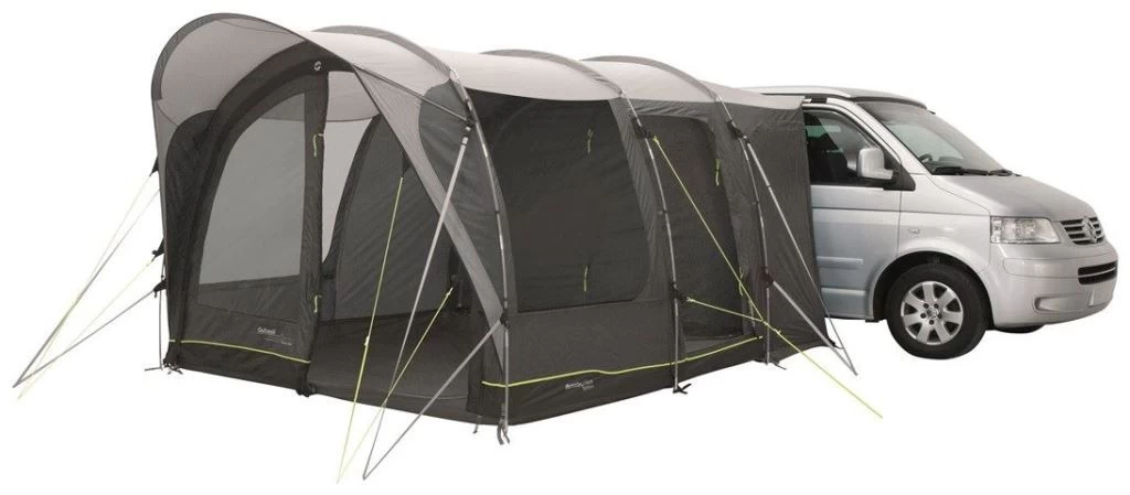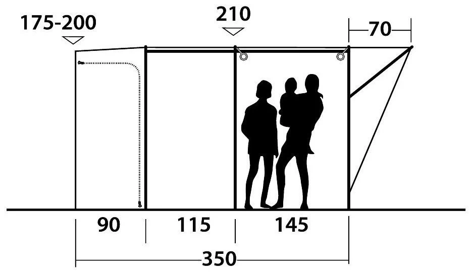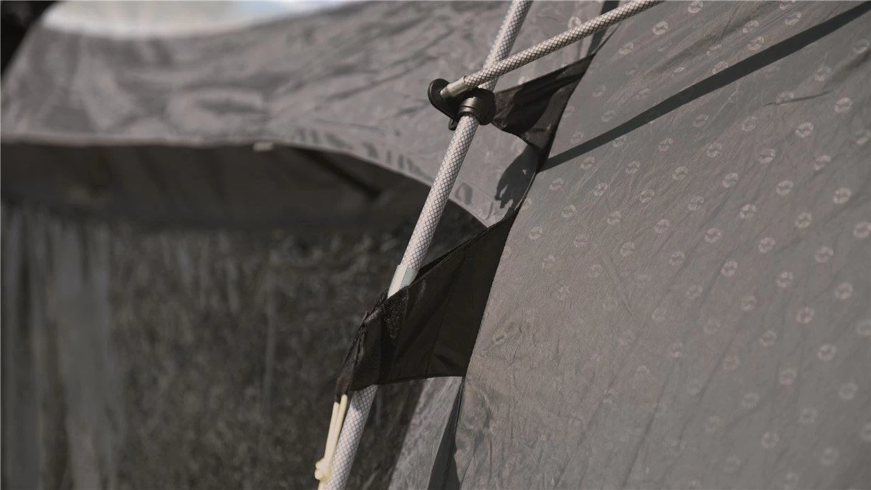 . Vertikale Frontwand mit Vordach für einen optimalen Wohnraum im und vor dem Zelt. Die Front kann mit einem doppelten Reißverschluss komplett geöffnet werden und ist mit Moskitonetz ausgestattet, das beim Lüften Insekten fernhält. Großes Vordach bietet Schutz vor Regen und gleißendem Sonnenlicht. Große Fenster lassen die Camper das Geschehen außerhalb hautnah erleben oder werden komplett geschlossen, um die Privatsphäre zu wahren. HookTrack System bietet vielseitige Optionen zum Aufhängen von Lampen und anderen Gegenständen mit einem Gewicht bis 1,5 kg.