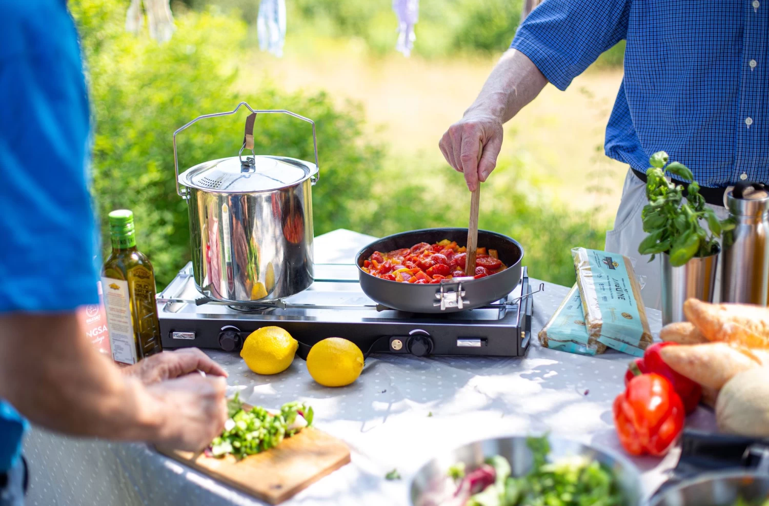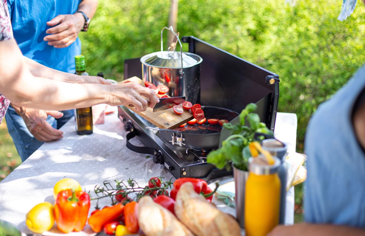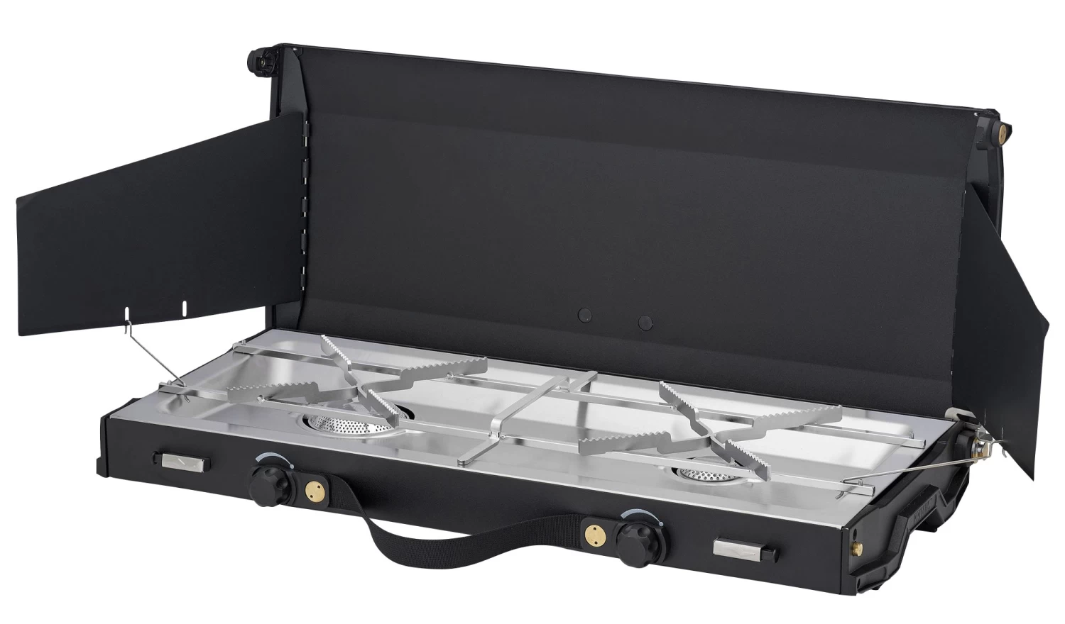 Die zwei Brenner bieten unterschiedliche Flammenoptionen, damit du mit mehreren Töpfen oder Pfannen gleichzeitig und bei unterschiedlichen Temperaturen kochen kannst.