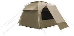 Die Kuppel Cobra Stone 5 bietet Platz für fünf Personen und bietet volle Stehhöhe sowie Vielseitigkeit. Die Platzierung der Entlüftung sorgt für einen verbesserten Luftstrom, wenn die Türen geschlossen sind. Roil weg die Veranda Wände bei schönem Wetter für den freistehenden Modus, die das Innenzelt enthüllt. Diese hat eine regenfeste Vordertür mit Zweiwege-Reißverschluss und ein dreilagiges Fenster, das aus einem Netzpaneel mit PVC hinten und einem Vorhang für Privatsphäre besteht. Die einfache Hintertür U-Tür hat auch einen Zwei-Wege-Reißverschluss. Dunkle Wände reduzieren das Licht für mehr Schlafkomfort.