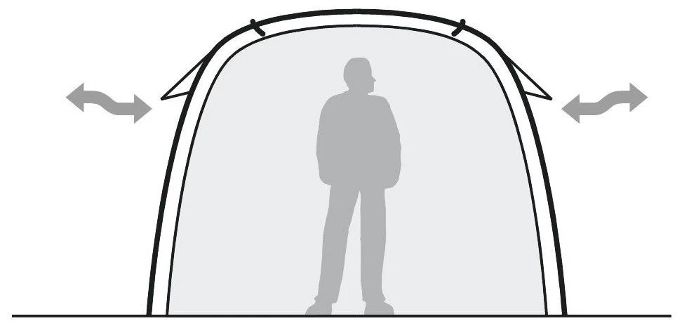 The simple rear door U-door also has a two-way zip. Dark walls cut down light for enhanced sleep comfort.