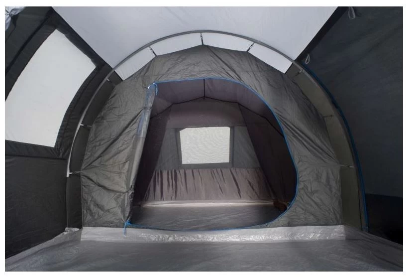 Das Zelt besteht aus einer Schlafkabine und einem Wohnraum. Der Wohnraum hat einen Seiteneingang mit einer Moskitonetztür. Darüber hinaus verfügt das Zelt über abschließbare Fenster und ein permanentes Belüftungssystem für einen kühlen Schlaf. Ein PE Groundsheet wurde vorne platziert.