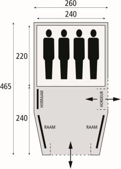 De Safarica Blackhawk 260 tunneltent is een compacte tunneltent met een royale voorbouw. De tent biedt ruimte aan maximaal 4 personen. De tunneltent heeft een hoogte van 200 cm, waardoor u makkelijk kunt staan in deze tent.
